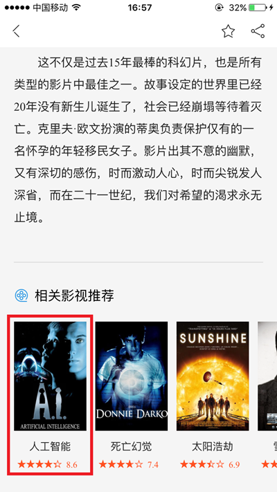 2. 进入文章详情页后,拉到末尾有【相关影视推荐】;