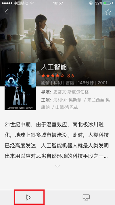 3. 点击想看的影片海报,进入影片详情介绍页,再点击页面左下方的一键播放图标“▷”,就能观看视频了。