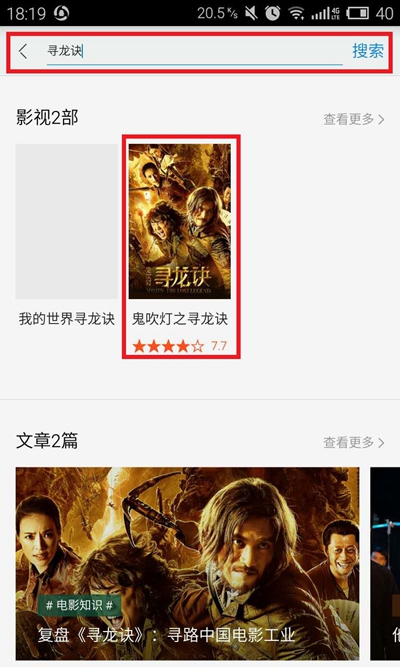 2. 搜索栏下出现搜索结果,点击想看的影片海报,进入影片详情页;